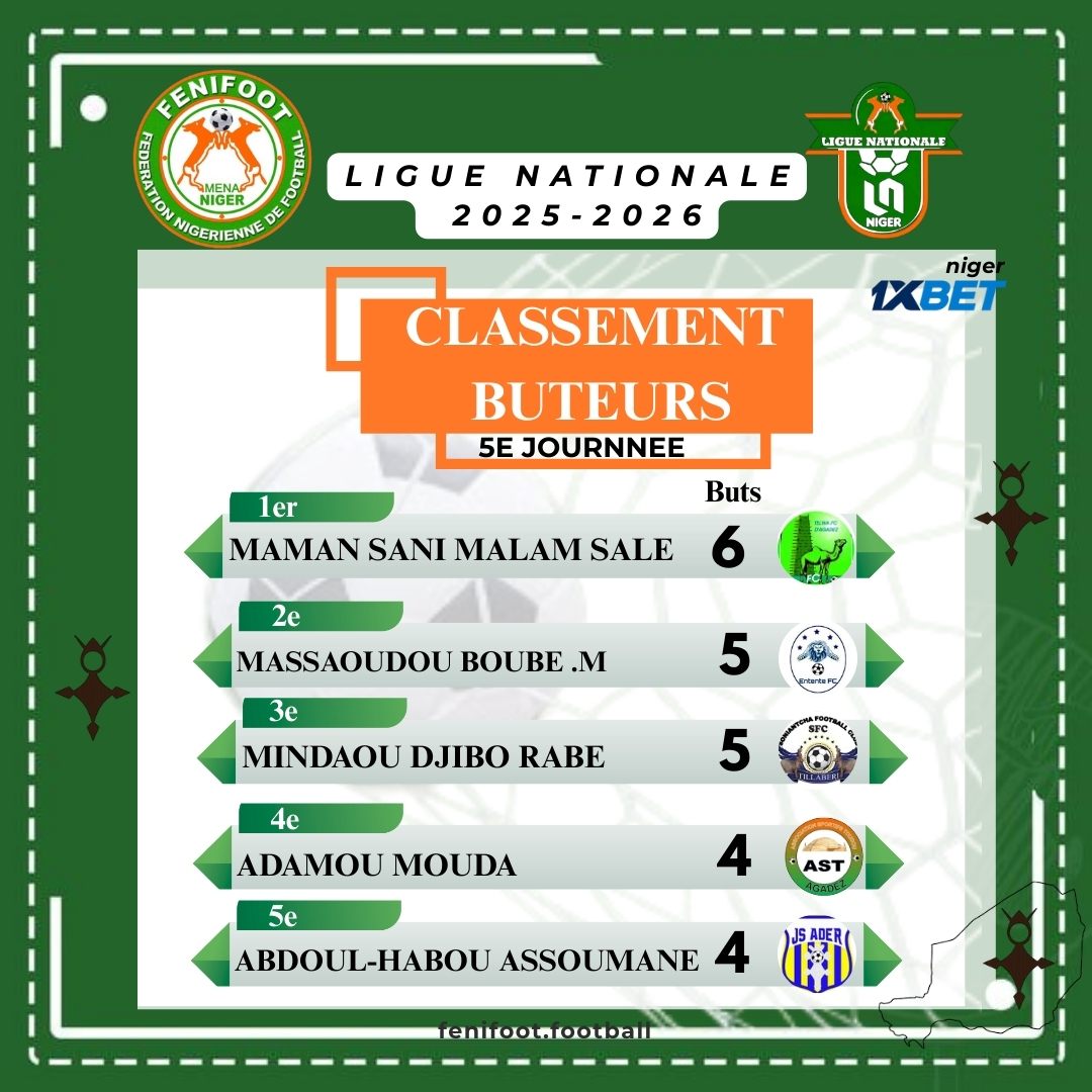 | 2 | JANGORZO | 1 - 0 | AS BOURJA | 13 / 12 / 25 | REGIONAL DE MARADI |